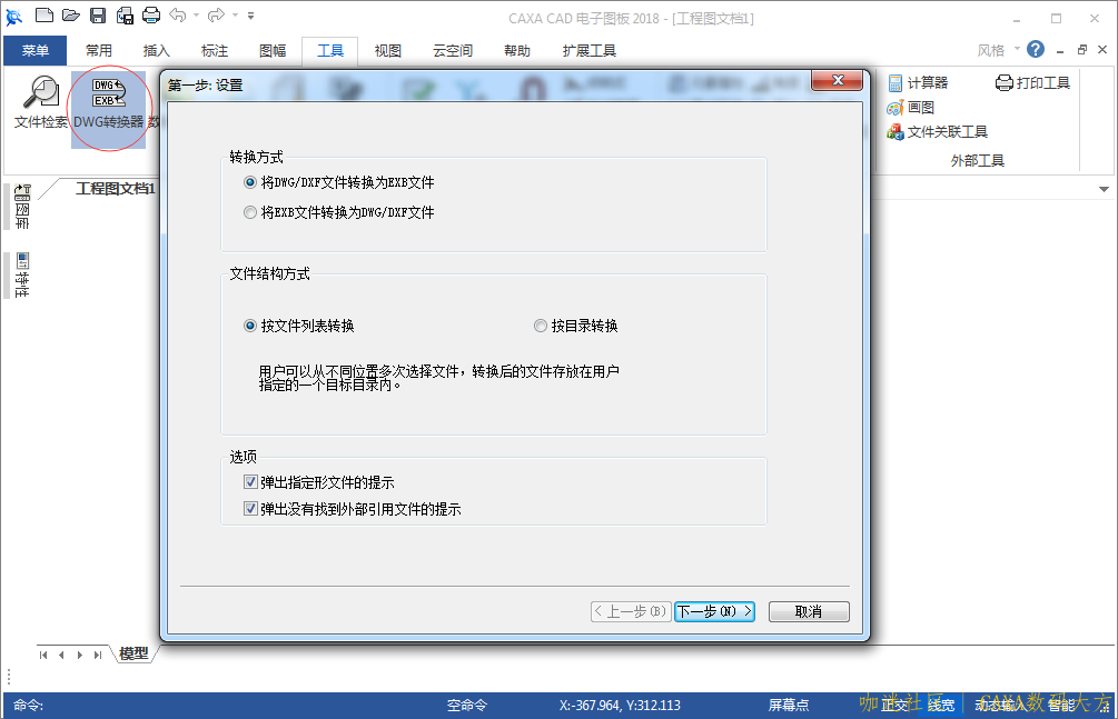 电子图板有文件批量转换的工具,提供可以选择的双向模式: