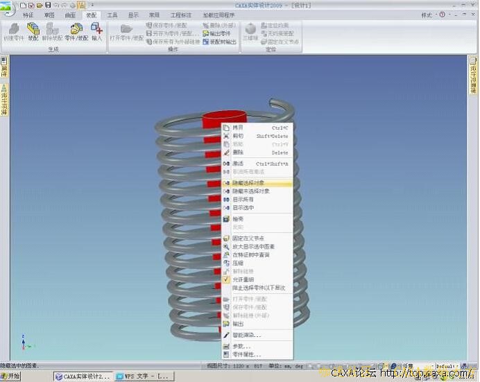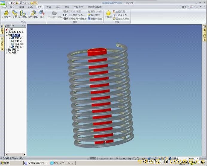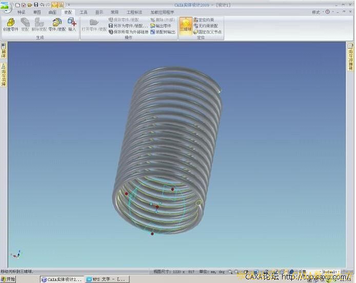 | 实体设计一直没有提供弹簧的直接装配的方法。经过一段时间的摸索找到了一种装配办法,现与大家共同探讨。 实现过程如下: 1、先放置一段圆柱体;生成三维螺旋线,并通过三维球将其定位于圆柱体端面中,也可直接在圆柱体中心点生成螺旋线。因为此时的三维螺旋线定位锚位于中心点。 2、生成弹簧。 3、将生成的弹簧和圆柱体装配成一体,注意调整圆柱体的长度和弹簧一致。 4、然后选中圆柱体并作隐藏。 5、此时的弹簧就可以采用同轴、贴合等约束装配了。 |