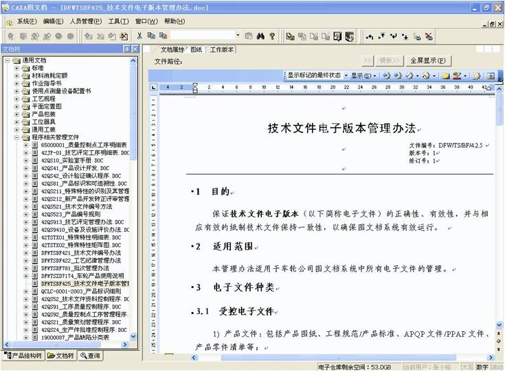 1.经过东风车轮和CAXA技术人员的探讨,共同制定了一套切合公司实际的方案。2007年初引进CAXA图文档软件后开始立项,成立项目小组,推进CAXA图文档在公司的应用。