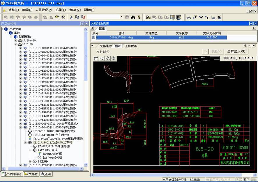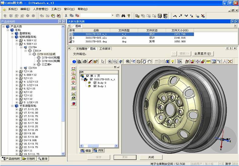 CAXA图文档管理系统为车轮公司建立了一个有效的数据管理平台,极大地提高了技术管理和设计人员的工作效率,技术文件也实现了规范化和标准化的管理。
