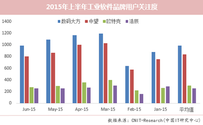 日前,CNIT-Research(中国IT研究中心)针对国内主流工业软件品牌在2015年上半年的用户关注度、移动关注度进行了监测。数据显示,数码大方在用户关注度、移动互联网关注度方面一家独大,以绝对的优势位居工业软件网络品牌影响力的首位。