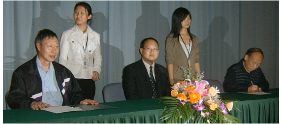 上海市版权局施世东副处长做重要讲话 上海重型装备制造行(右)与CAXA签署合作协议