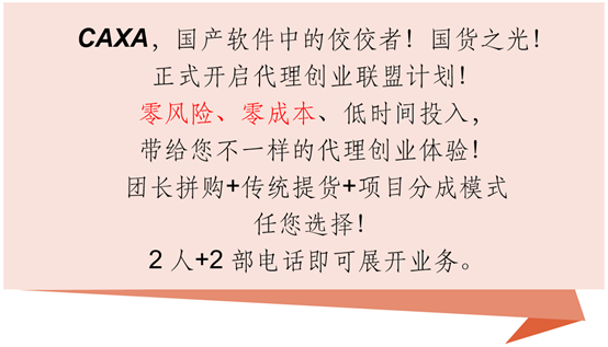 2020年9月,CAXA数码大方火热开展网络渠道招商行动,如果您想多一条生财之道,如果你想为国产CAD出一份力,就请加入CAXA代理团队,我们为您的创业之路保驾护航!