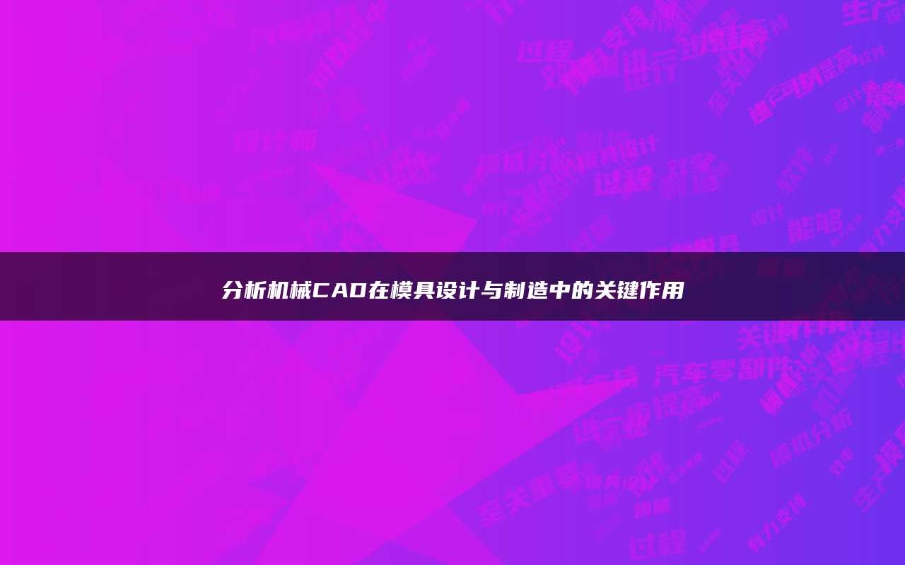 在当今制造业中,模具设计与制造的重要性不言而喻。而机械CAD在其中扮演着至关重要的角色,成为推动模具行业发展的关键力量。