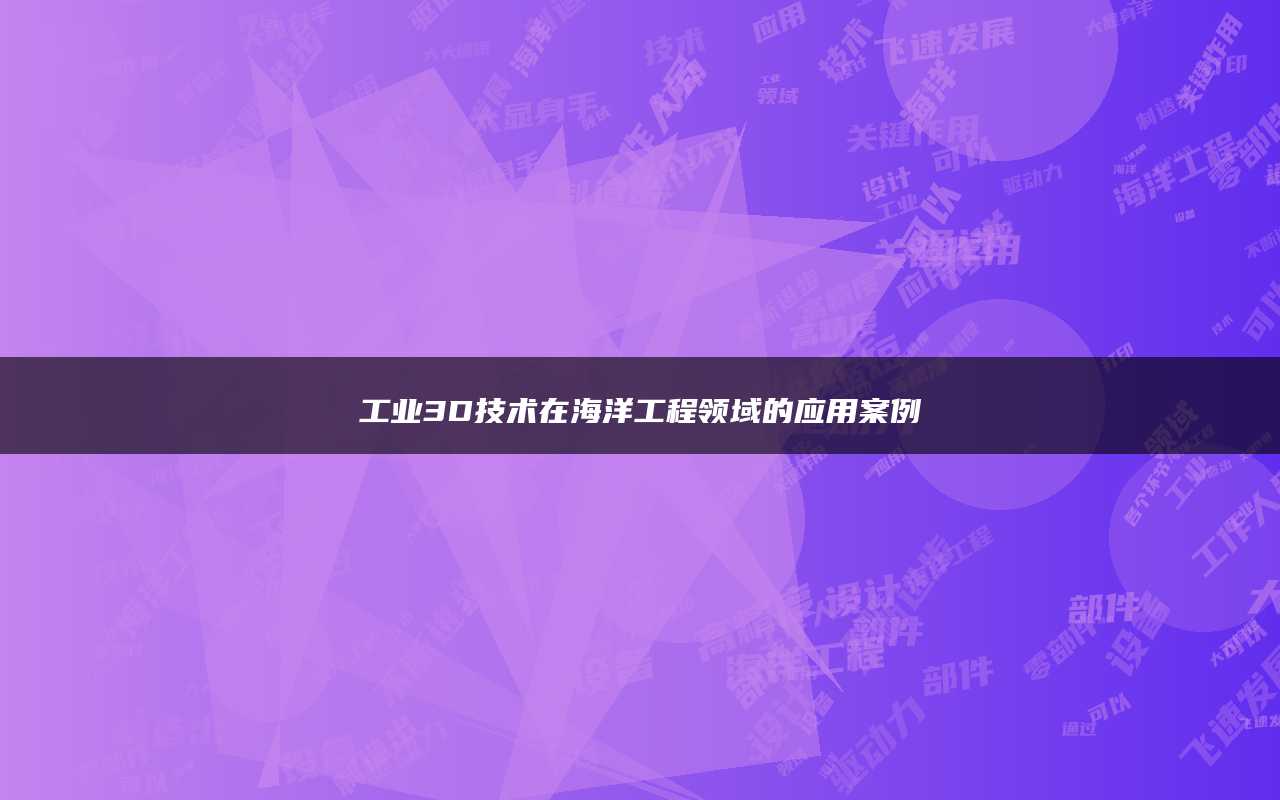 在当今科技飞速发展的时代,海洋工程领域正迎来一场深刻的变革,而工业3D技术无疑是这场变革中的重要驱动力。
